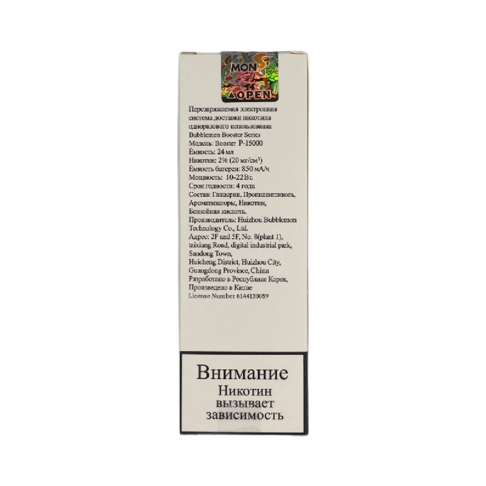 Технические характеристики Bubble Mon Booster P-15000 Маракуйя Ягода