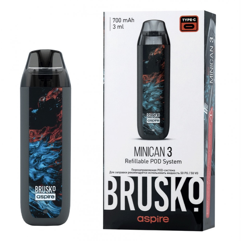 Перезаправляемая Под-Система Бруско Миникан 3 (Brusko Minican 3) 700 mah, Серый Флюид - купить в Верее